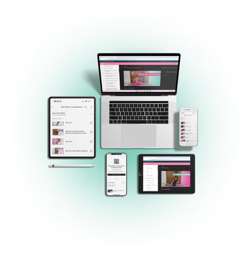 Você pode acessar o programa Pilates em Casa em qualquer dispositivo com conexão à internet, como: Celular, Computador, Tablet e TV (via Chromecast, Apple TV ou outros dispositivos de espelhamento)